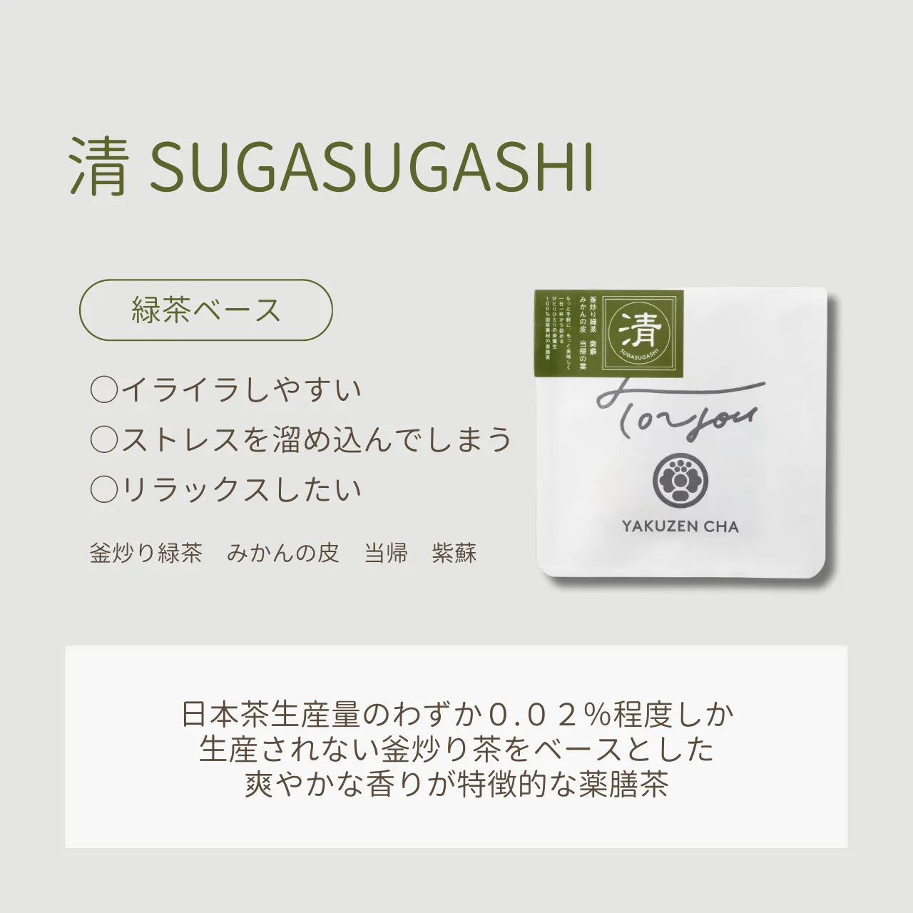 日本茶生産量のわずか0.02%程度しか生産されない、釜炒り茶をベースとした爽やかな香りが特徴の薬膳茶 -