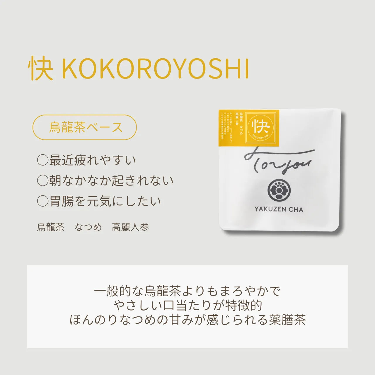 1『苦味、癖のない味わい』 –聞き馴染みのある原料をシンプルにブレンドした薬膳茶なので、無理なく美味しく飲める。