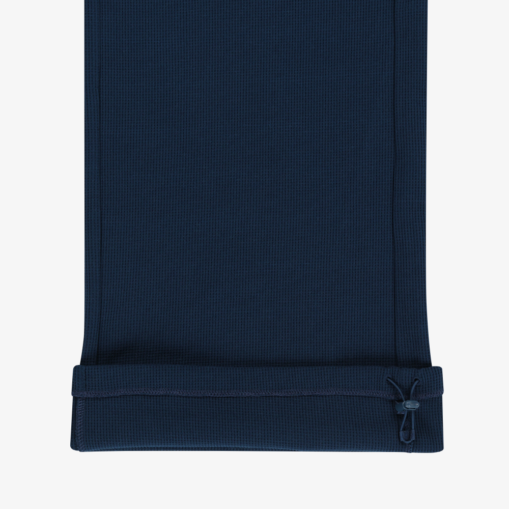 コットンライクなワッフル生地を使用した、柔らかく肌なじみの良いロングパンツ。リラックス感とスタイリッシュさを兼ね備えた一本です。