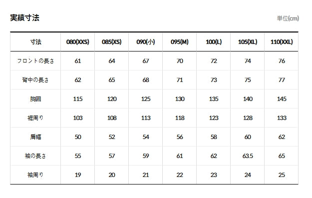 | サイズ | 身長 | 胸囲 | 裾周り |