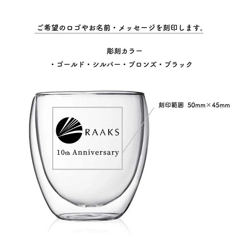 日常を、少しだけ特別に。世界中で高く評価されるデザインと革新性を誇る〈BODUM〉のPAVINA ダブルウォールグラスに、お名前・メッセージ・イラストなどを彫刻して、世界にひとつの特別な一客をお届けします。