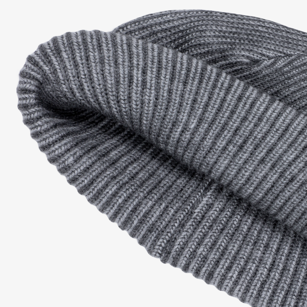 ベーシックな折り返しデザインで仕上げた、程よいボリューム感と整理された印象を演出するビーニー帽。