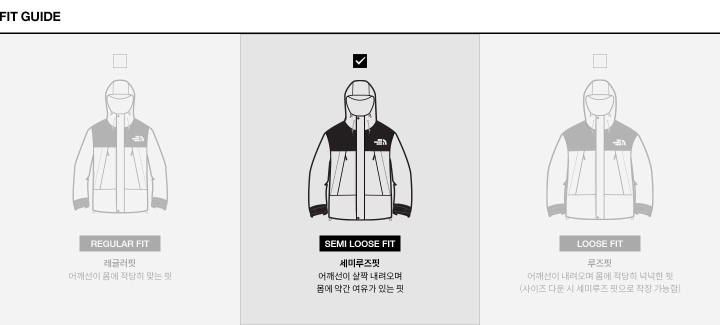 韓国版ノースフェイスのメンズジャケット・ベストは、ベーシックなフィット感をベースにしながら、胸囲・裾まわりにやや余裕を持たせた設計が特徴です。韓国サイズは日本サイズとほぼ同等ですが、体型や着こなしの好みによってサイズ選びの調整が必要です。
