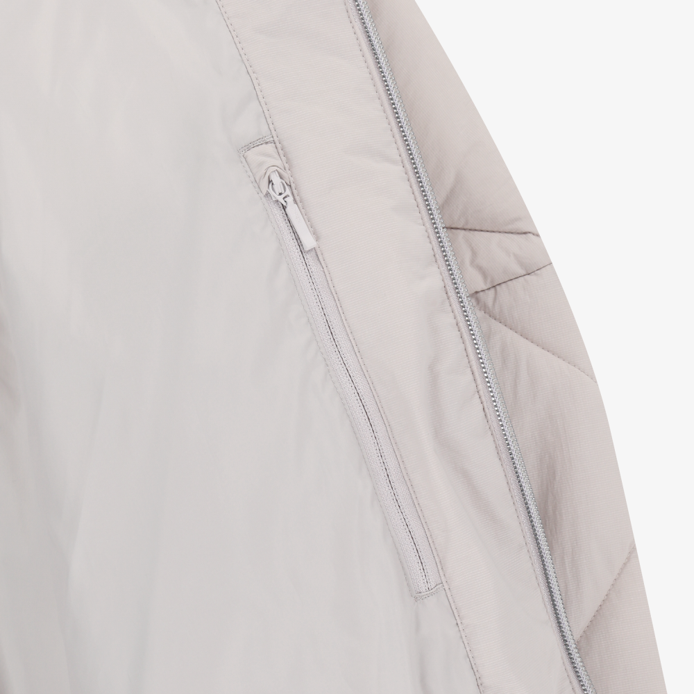 このジャケットは、ダイヤモンドキルティングの繊細なディテールが目を惹く、洗練されたデザイン。中綿には、**高機能素材「ON Ball」**を採用し、軽量ながらも抜群の保温性とボリューム回復力を実現。冷たい外気をしっかり遮断しながら、ふんわりとした暖かさをキープします。
